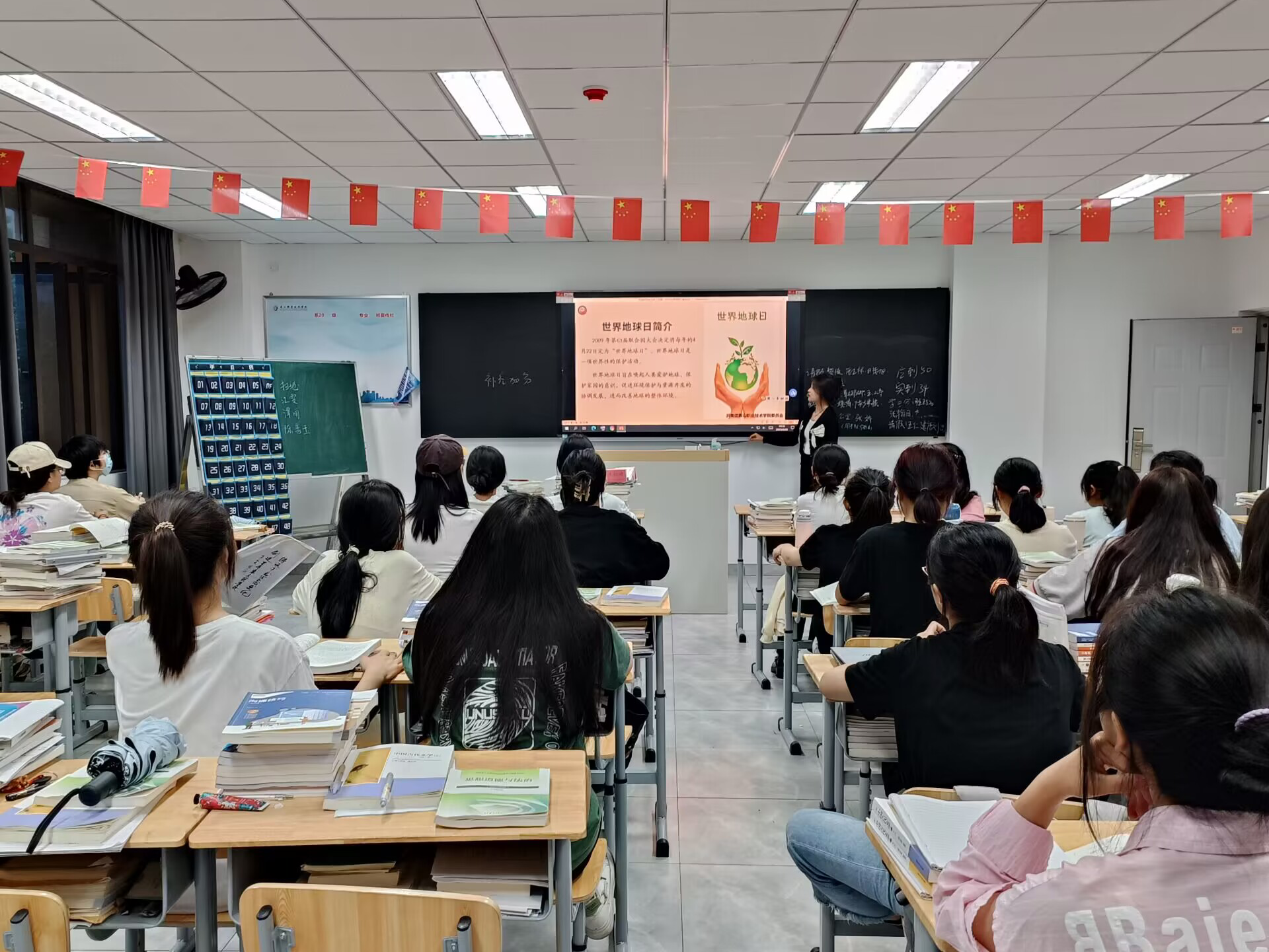 全校各班级在晚自习期间开展了世界地球日主题宣讲活动。各班宣传委员作为宣讲人进行了PPT主题宣讲,倡议同学们节约资源、低碳生活,为构建绿色和谐校园贡献自己的力量。