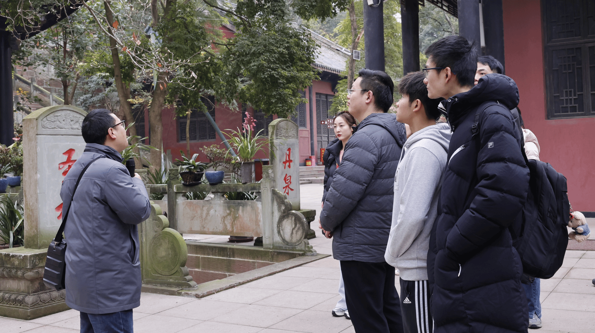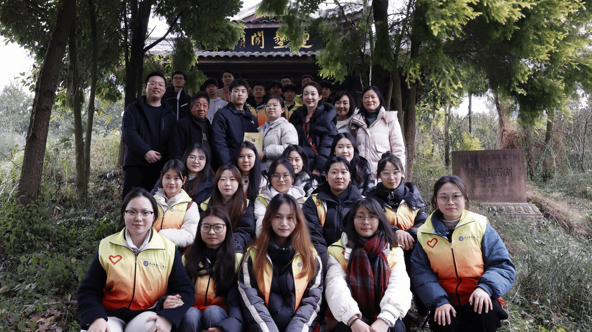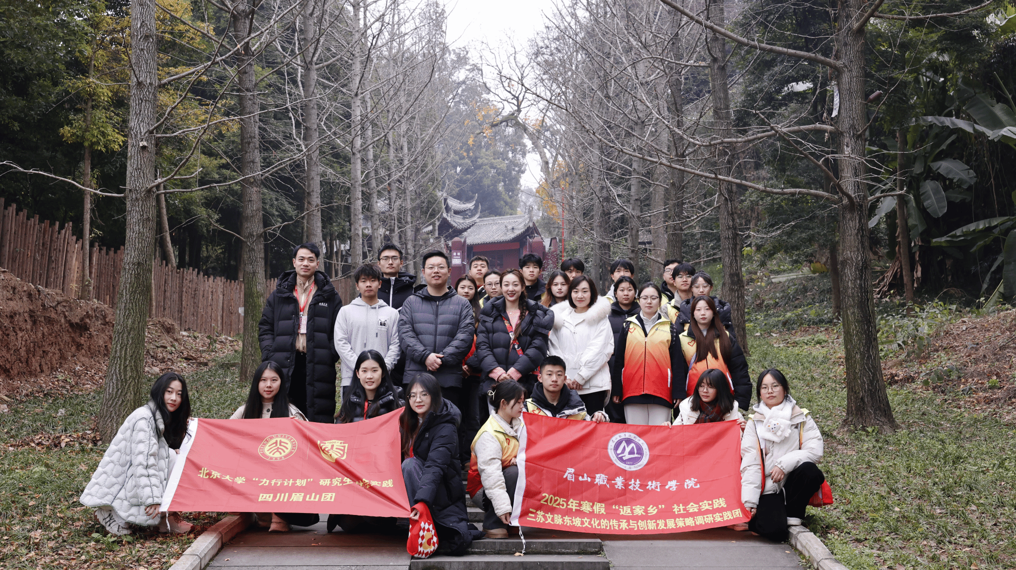 1月15日,学校团委寒假“返家乡”社会实践团携手北京大学“力行计划”四川眉山研究生社会实践团,实地调研了蟆颐观和连鳌山两处文化遗迹。