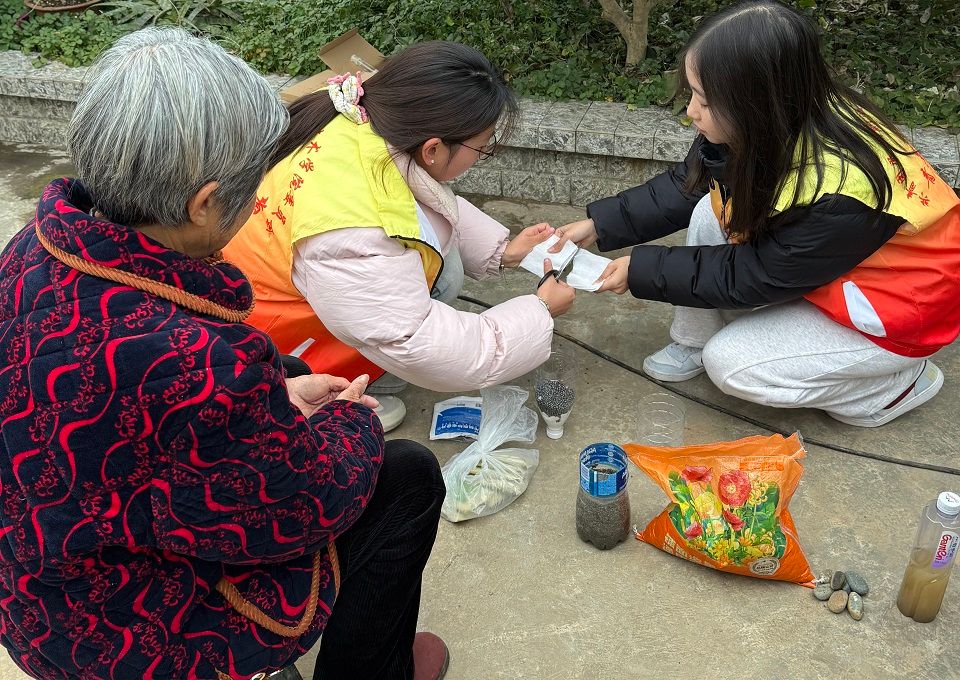 活动期间,由产业学院分析检测专业学生组成的实践团队,带着专业知识和热情,深入鸿华村和桥楼村,通过问卷调查、访谈和实地考察等,详细了解了乡村水质问题及村民需求。实践团队成员发挥专业优势,自主制作了一组简易净水装置,有效解决了村民所提问题。
