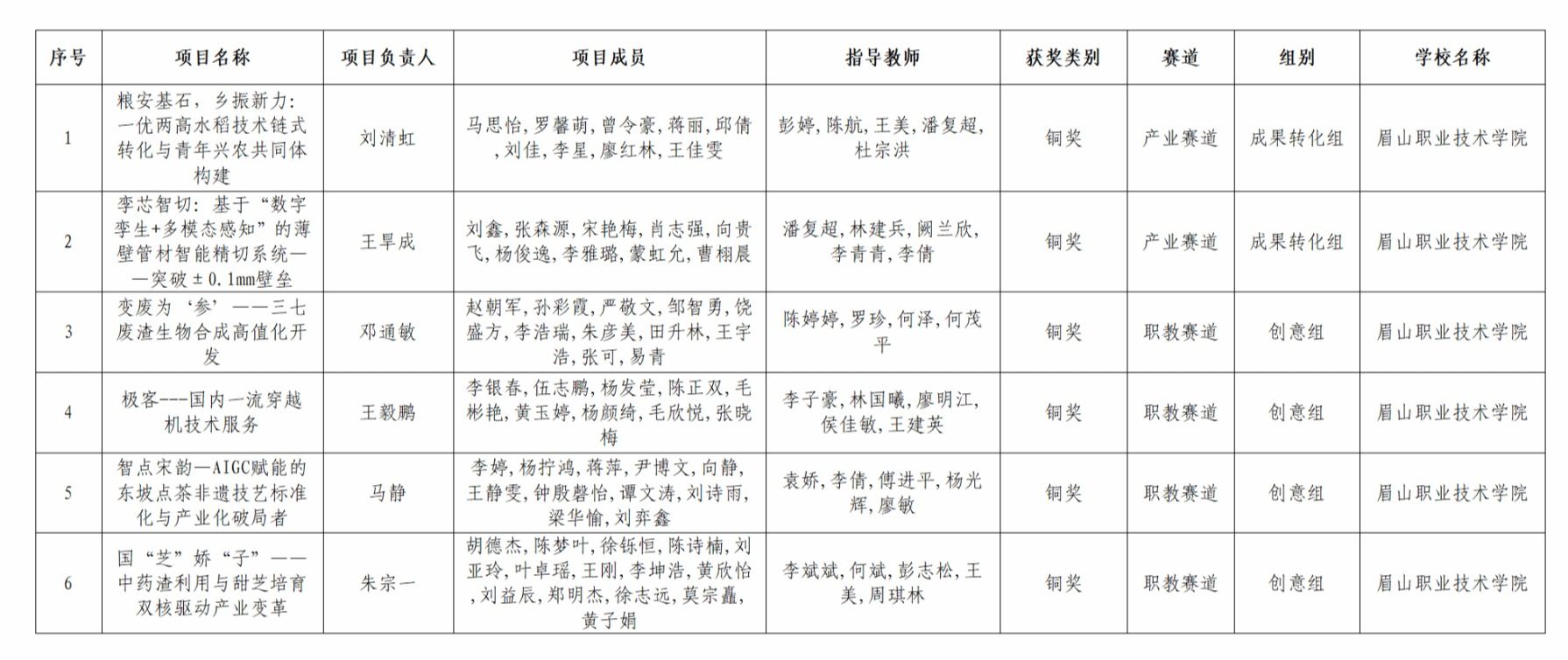 近日,四川省教育厅公布了2025年四川省国际大学生创新大赛获奖名单。我校斩获职教赛道铜奖4项、产业赛道铜奖2项。