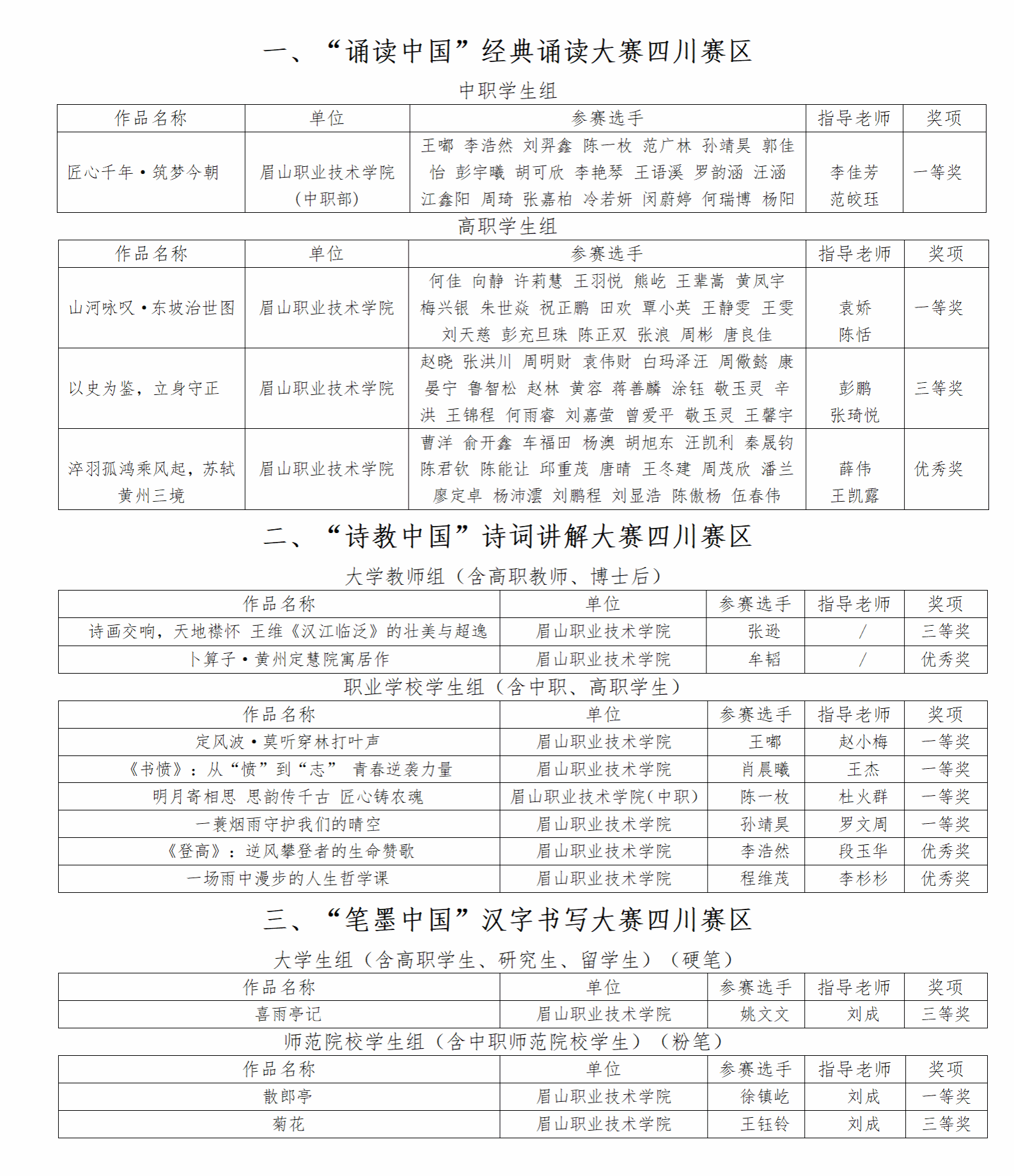 近日,由四川省委宣传部、省委教育工委、教育厅、省文明办、省语委共同主办的四川省2025年中华经典诵写讲演系列活动圆满落下帷幕。我校选送的15件参赛作品脱颖而出,共荣获一等奖7项、三等奖4项、优秀奖4项。