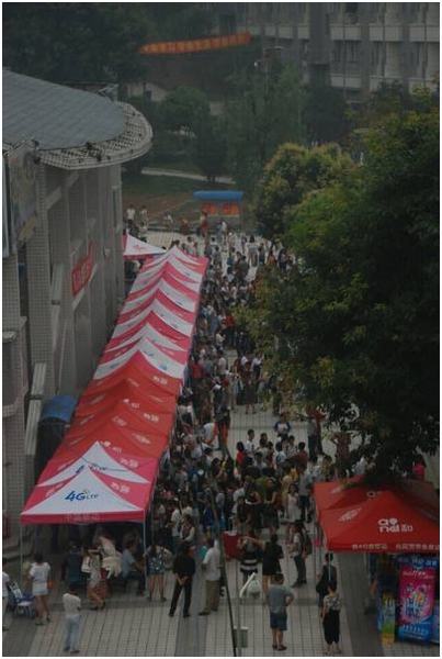 早上八点,负责在眉山东站和火车站接待新生的志愿者们就出发了。校外迎新的志愿者代表了学院给新生以及家长的第一印象,所以志愿者们都拿出自己最好的状态对待此次迎新工作。他们有的高举学院新生接待的招牌,有的主动帮新生提行李,有的耐心为新生和家长解释疑问。他们在早就过了饭点之后才轮班蹲在地上吃盒饭,他们顶着烈日淋着暴雨接待新生,他们口干舌燥来不及喝水,他们默默奉献没有一句抱怨。直到晚上九点,随着最后一辆汽车的到站,他们才完成了一天的迎新工作,他们在回校的车上已经昏昏欲睡,志愿者彼此之间在此刻已经没有了更多的言语交谈,他们疲惫,但他们同样在回味奉献的快乐。