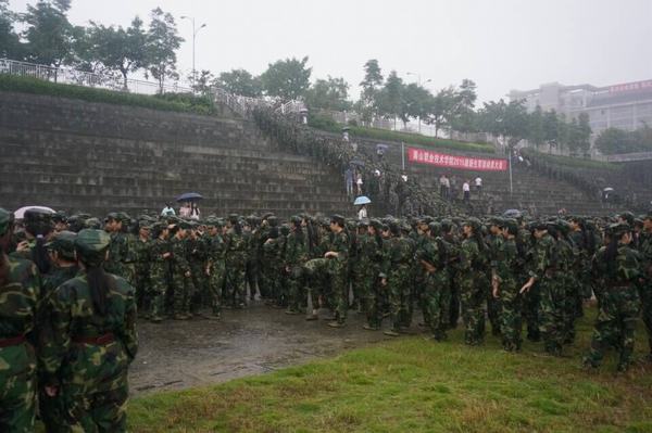 动员大会期间,突下大雨,但与会领导、教官、全体新生及其他工作人员毫不畏惧,依然在雨中站立,直至大会结束,这场令人难忘的雨中动员会,不仅是对同学们意志的沐浴,更是精神的洗礼,也是一个对新生能否顺利完成两周军训生活的考验。