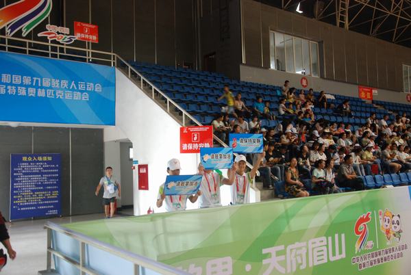 “我们的工作归纳起来就是站点、举牌、放牌,然后微笑着告诉观众们:运动员正在比赛,请大家保持安静好吗?谢谢大家的配合。”志愿者孙杨在运动员比赛的间歇,接受了我们的采访。这也正是我们所看到的看台上举牌“小青椒”真实的工作写照,孙杨是我院参与本次残运会志愿者服务中的一名通用志愿者,从开赛到现在,循环、单调、反复的动作他已经进行了4天。