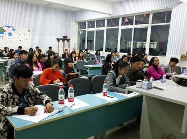 (来自各系部的评委代表认真聆听讲解)