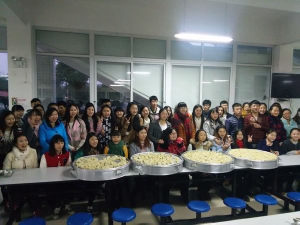 吃饺子是冬至日的传统习俗,到了食堂一楼,所有男生便去帮忙抬饺子,女生则开始摆碗筷,800个香喷喷的饺子出笼了,大家你一个我一个,再蘸上一点醋,吃起来别有一番滋味。饱餐一顿后,大家一起收拾碗筷,打扫卫生以后结束了这次欢快的活动。