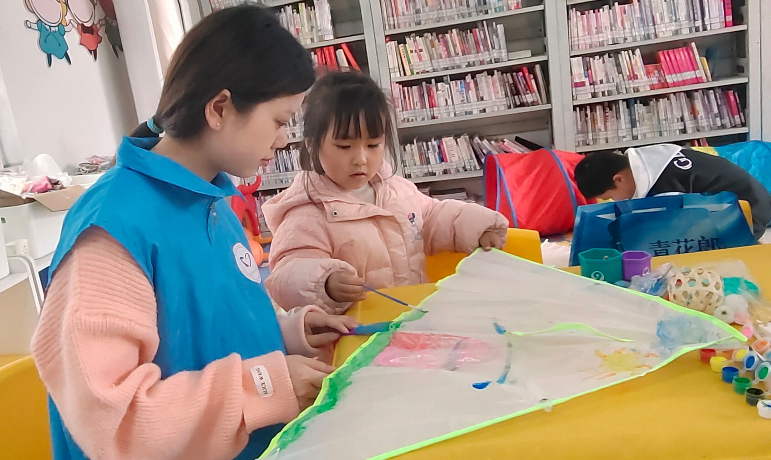 活动现场,志愿者进行了PPT讲解,帮助了小朋友了解本次手工主题背景和活动内容。活动过程中设置了“我的多样风筝”主题绘画活动,志愿者带领小朋友走进大自然寻找绘画思路,吸引小朋友积极参与。通过主题绘画活动,充分激发了小朋友的想象力和创造力。