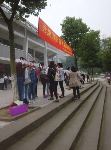 10月8日-10日,我院阳光影视表演协会在学院食堂门口设点举办了为期三天的“秀美眉职之最美瞬间”摄影展。