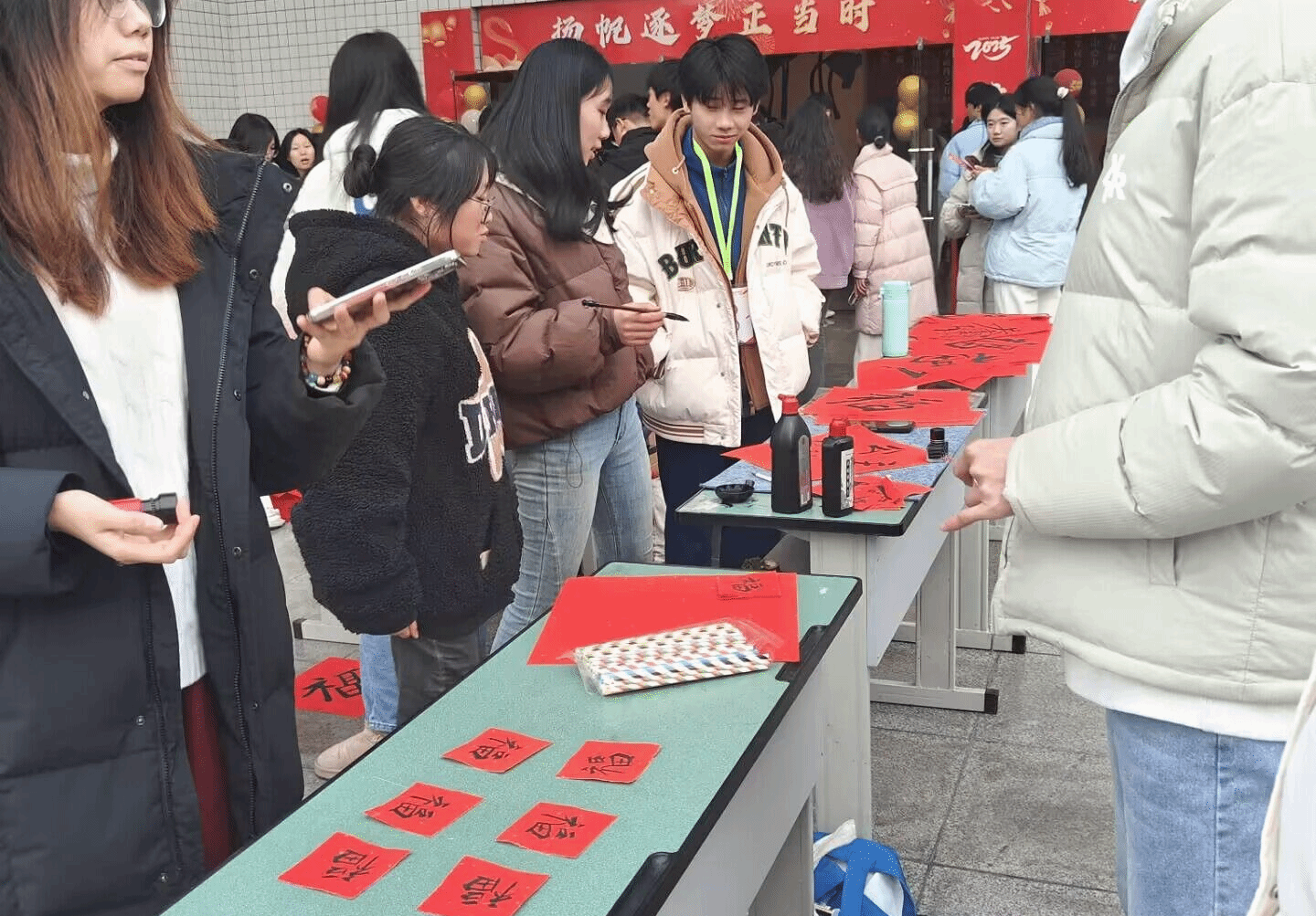 活动现场,书法协会的会员们挥毫泼墨,书写“福”字,传递新年祝福。工艺协会的会员们则用心雕琢元旦主题小工艺品,每件作品都独具匠心,为活动现场增添了一抹别样风采。植物保护协会则策划了一系列趣味横生的元旦主题小游戏,吸引了众多学生驻足参与。