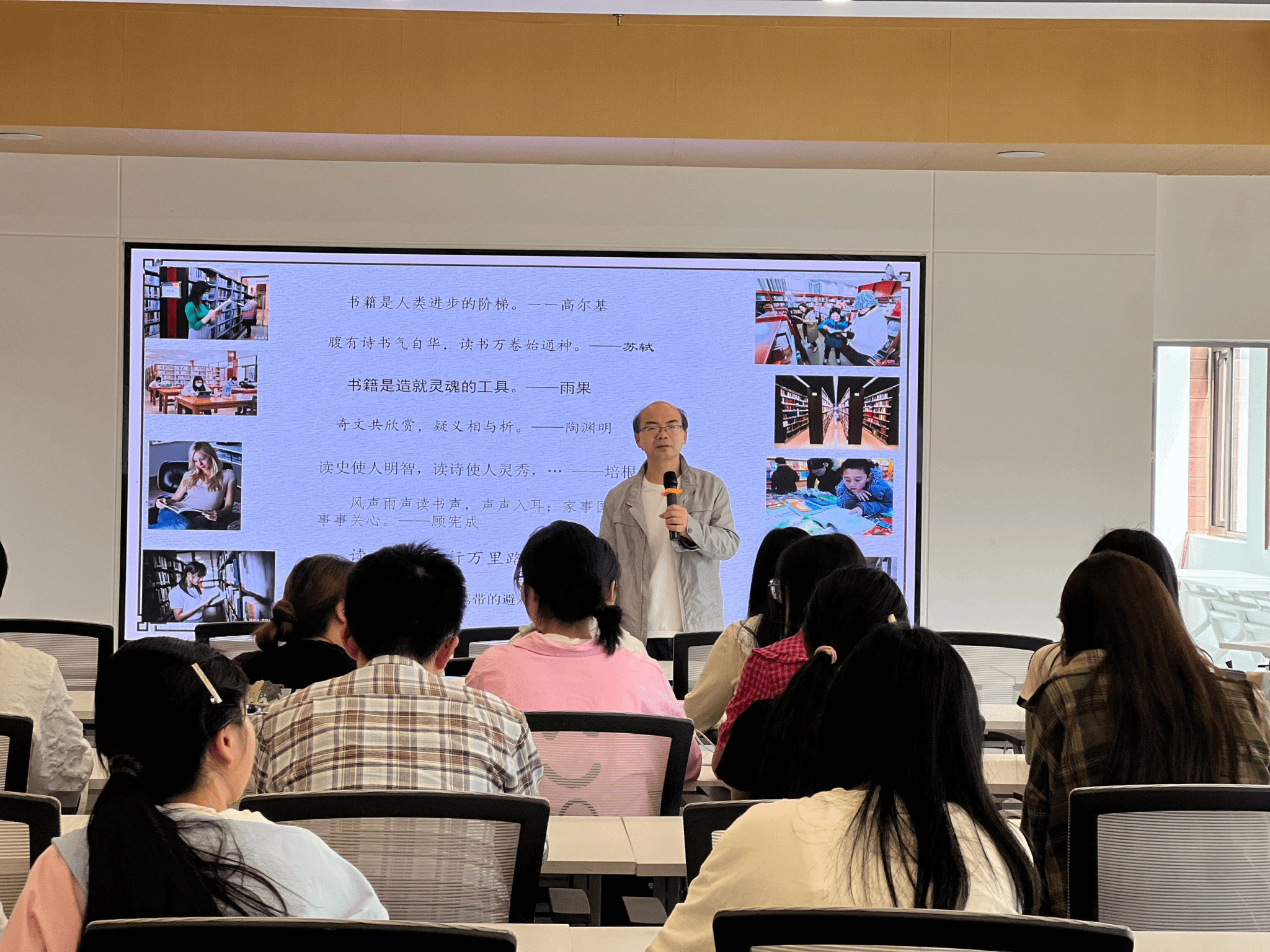 "阅读是一座随身携带的避难所"世界读书日主题讲座由万敏老师主讲,设置阅读知识抢答、诗文诵读等互动环节,现场气氛热烈。