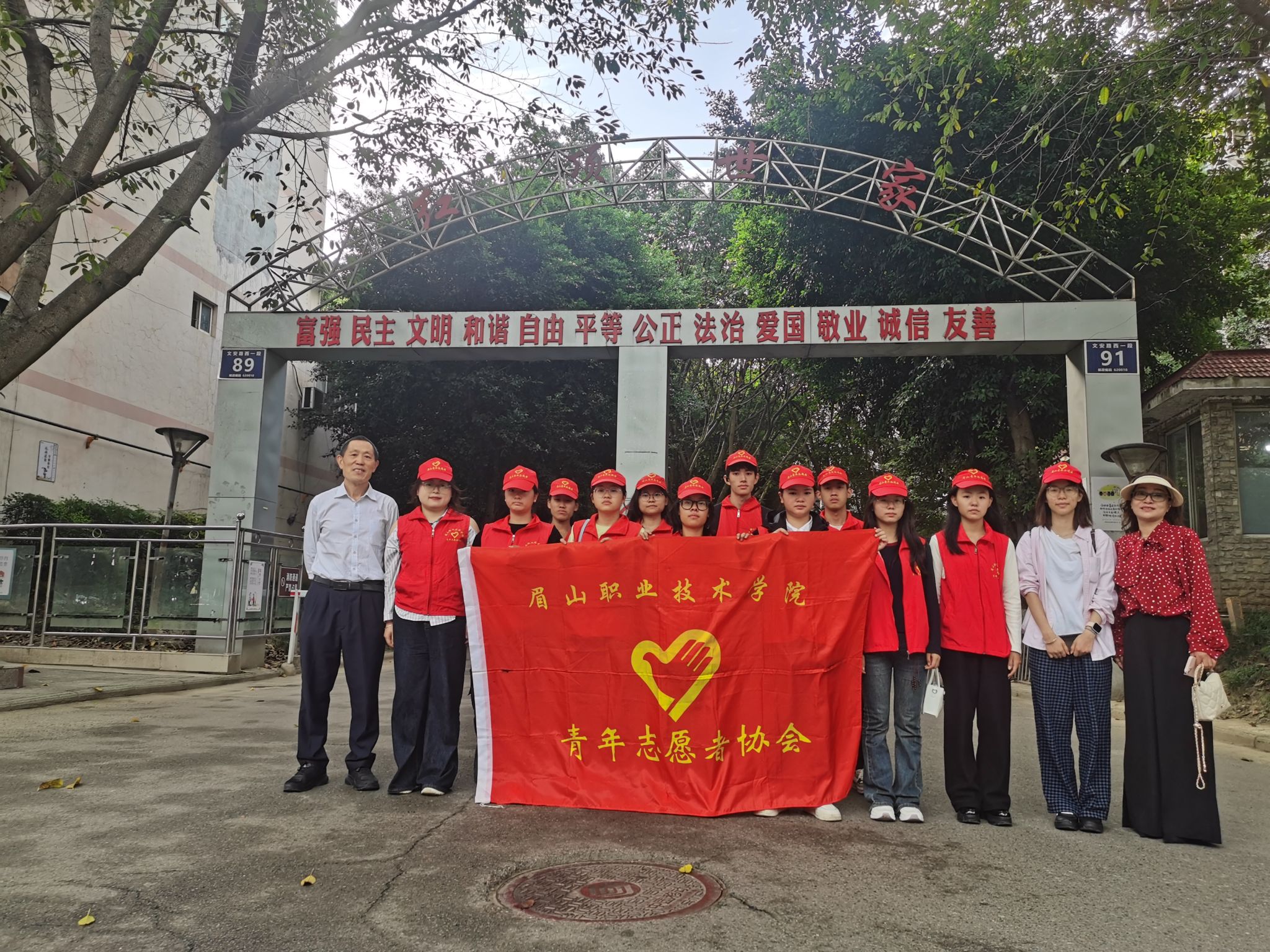 10月18日,一场以“青春暖夕阳,志愿助安康”为主题的志愿服务活动在红顶世家小区温情开展。活动由学院退休教师贺仲华教授引荐,我校青年志愿者协会积极响应,组建志愿队伍12人,深入桐花巷社区红顶世家小区义务劳动,帮助高龄环卫工人打扫清洁卫生,传递爱心。