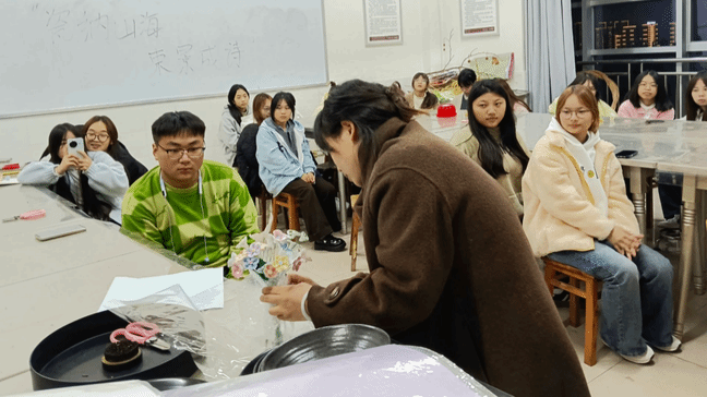 本次活动以陶瓷花包花手作为核心,契合冬深岁晚的时节氛围,以陶瓷花为创作主体,融合梅枝疏影的冬日意象进行包装设计。活动现场,指导老师彭婷细致讲解素纸裹花的折叠手法、装饰层次,以及与陶瓷花风格适配的包装技巧,确保每位成员们都能掌握创作要点。成员们结合指导自主创作,将冬日的凛冽风骨与花艺的温润诗意揉进包装设计,让陶瓷花的雅致与素纸的轻柔在作品中自然相融。活动尾声,大家纷纷展示各自完成的包花作品,积极交流创作思路与设计巧思,用镜头记录下寒色中暖意满满的创作瞬间。