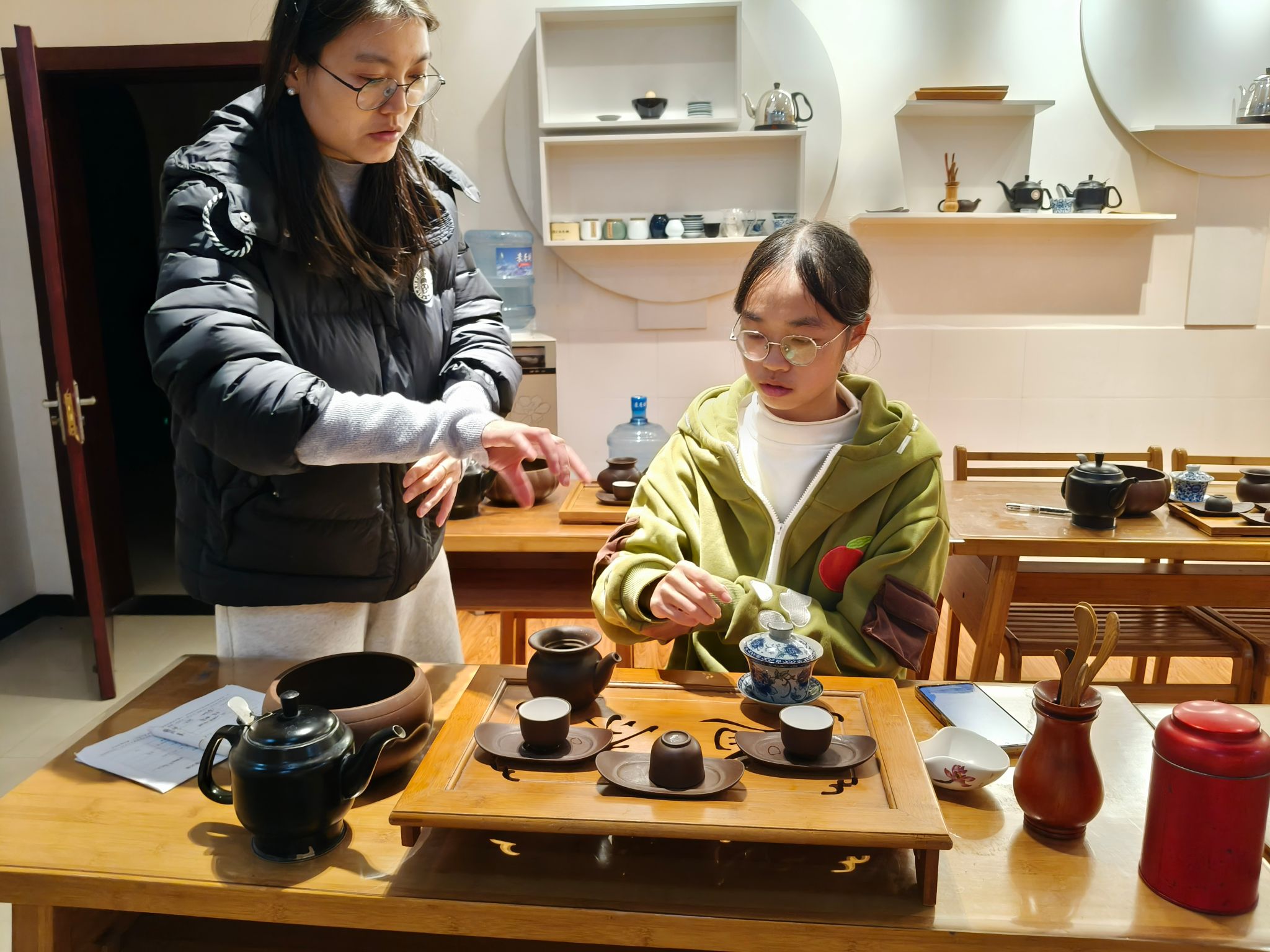 11月19日,我校茶艺社团在学校茶艺室开展了“秋韵品茗,茶润匠心”品茗活动。