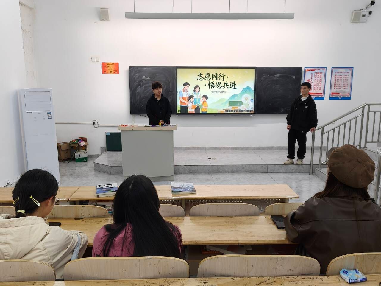 3月12日,我校支教爱好者协会在第四教学楼4108教室开展“志愿同行・悟思共进”主题活动。