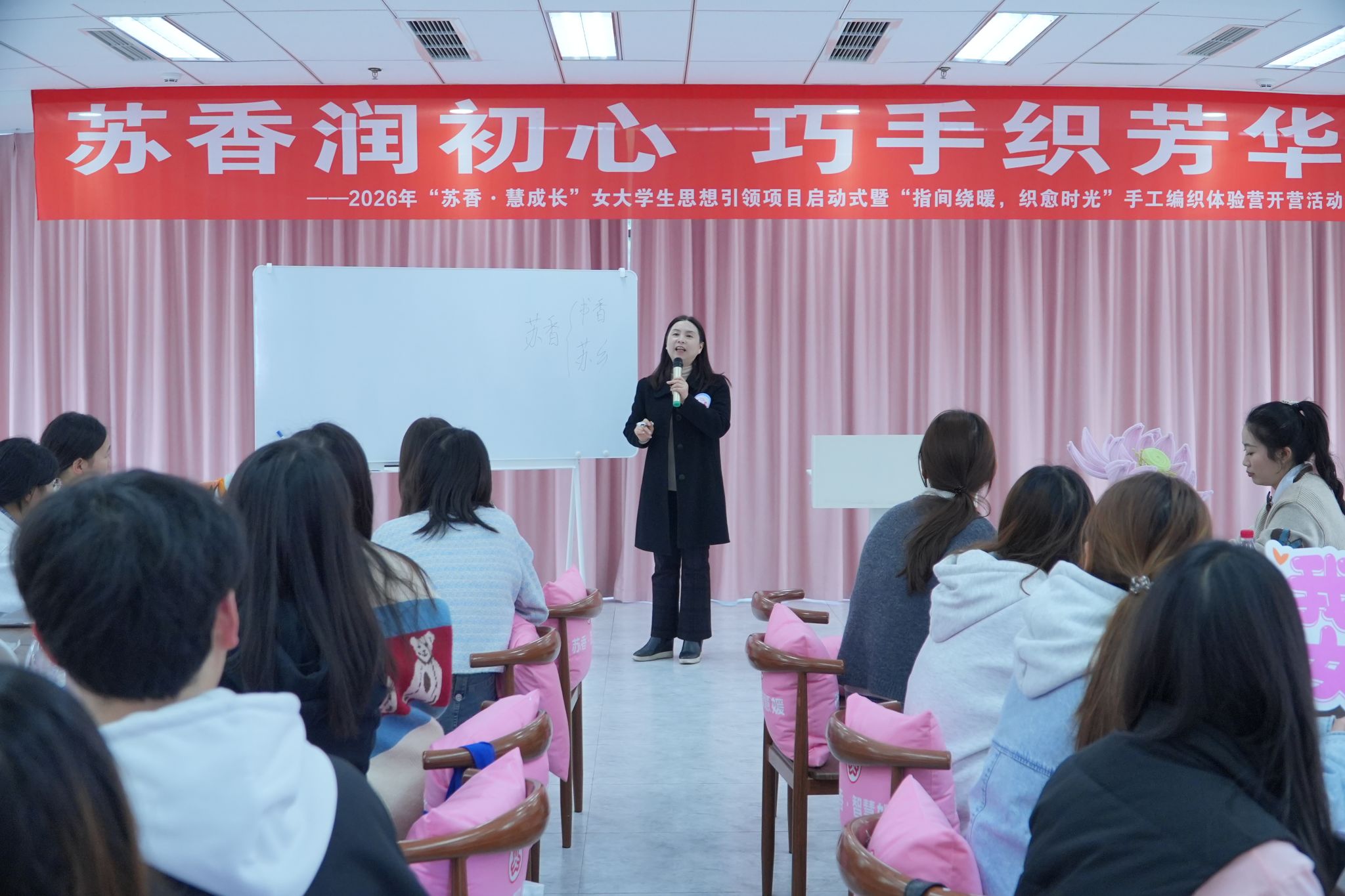 3 月 25 日,由学校妇女联合会主办、子瞻文化社协办的 2026 年 “苏香・慧成长” 女大学生思想引领项目启动式暨 “指间绕暖,织愈时光” 手工编织体验营开营活动,在图书馆巾帼驿站温情举办。