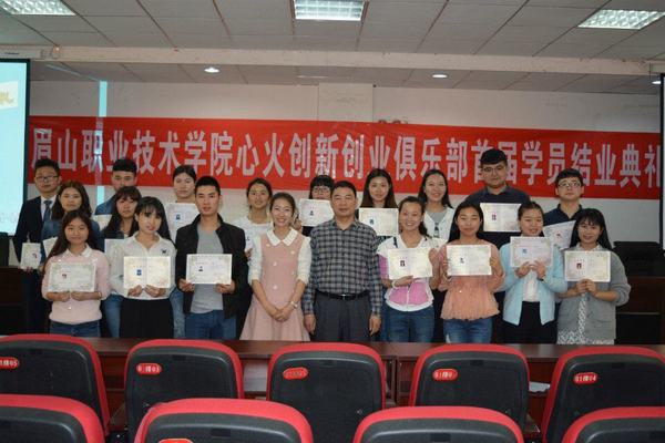 典礼在喜悦的音乐中拉开了帷幕,典礼分为七项议程,第一项议程,由会长文浩作上期工作总结;第二项议程,大家一起观看了精心制作的毕业视频“结业回忆录”,视频再现了同学们在俱乐部学习生活的点滴,记录了首届创新创业成员对俱乐部的感恩与留恋;第三项议程,由首届创新创业基地班学员代表刘鑫向大家分享了一路走来的风风雨雨,希望同学们能够在未来的工作中善于把握机会,不怕挑战,勇往直前;第四项议程,首届创新创业基地班成员合唱了歌曲《相亲相爱一家人》;第五项议程第二届创新创业基地班成员合唱《我相信》送给学长和学姐们;第六项议程,黎维红作总结讲话并为学员颁发结业证书;第七项议程,首届创新创业基地班学员与领导、老师合影留念。至此,典礼落下帷幕,所有的不舍、感激、祝福、憧憬、期盼都定格在美好的瞬间,祝福大家勇敢创造属于自己的人生,有一个前程似锦的未来!