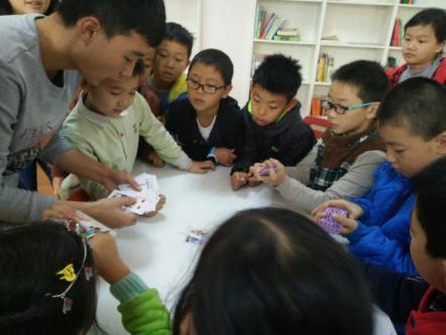 首先,吉他协会以一首优美而动听的曲子作为开场秀,吸引住了小朋友们的眼球;其次,吉他协会成员以游戏的方式对小朋友们进行简单的吉他基础教学,小朋友们从中体验到了音乐所带来的快乐。随后,由魔术协会成员带来了一段精彩的魔术表演,小朋友们学习了一个简单有趣的小魔术,小朋友们积极参与到学习中,并感受到了魔术的神奇;最后,协会全体成员与“妇儿之家”的负责人交流了教学感受、分享了活动心得体会,为本次特色活动画上了一个圆满的句号。