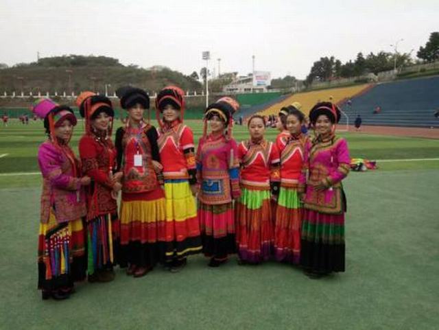 (表演民族舞蹈的同学合影留念)