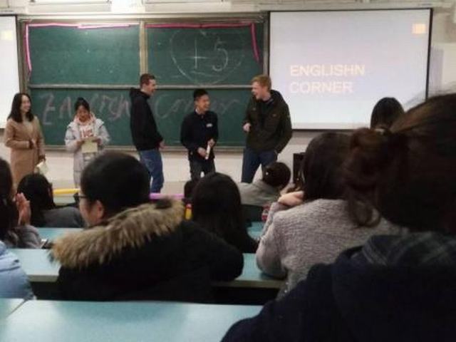 活动分为三个环节。首先是歌曲舞蹈及魔术表演。精彩的表演深深地吸引了同学们的眼球,过程中同学们积极地与台上表演者互动,赢得了台下观众们的阵阵掌声;其次是两位交换生与同学们的互动交流环节,带动了同学们相互用英语交流的热情;最后是游戏环节,将整个活动推向了高潮。