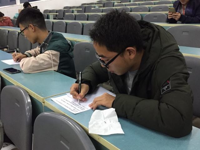 为进一步弘扬中华优秀传统文化,激发青年大学生对文字书写的热情,营造良好的人文环境,11月15日,我校书法协会与风潮文学社在2202教室开展以“笔墨传情,见字如面”为主题的书写活动。