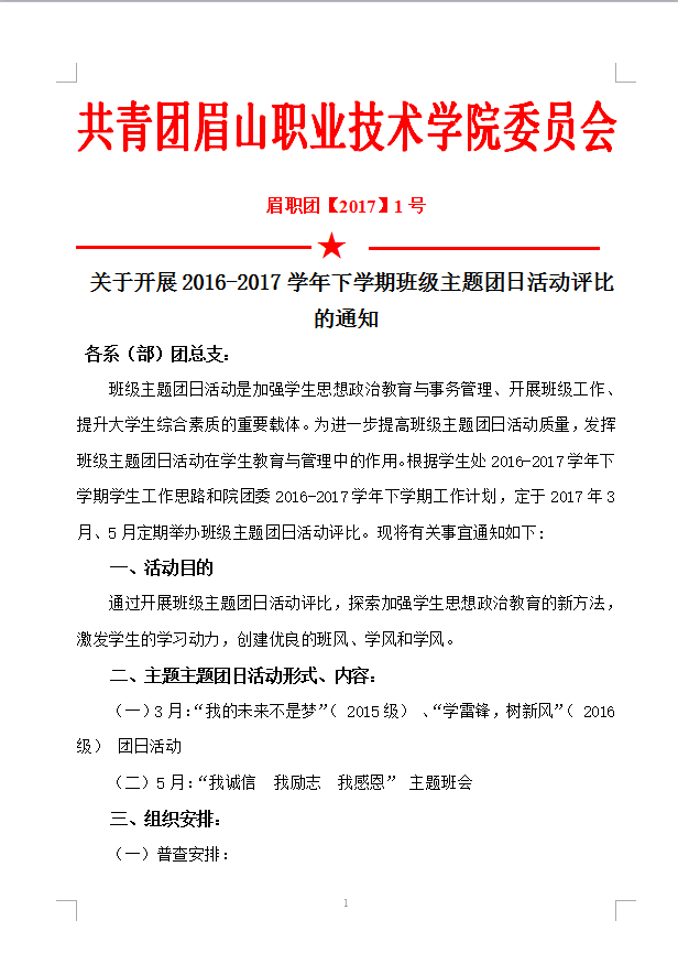 关于开展2016-2017学年下学期班级主题团日活动评比的通知