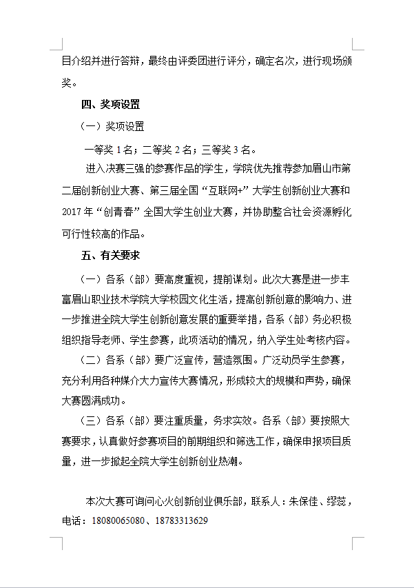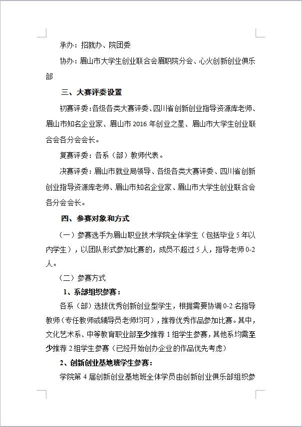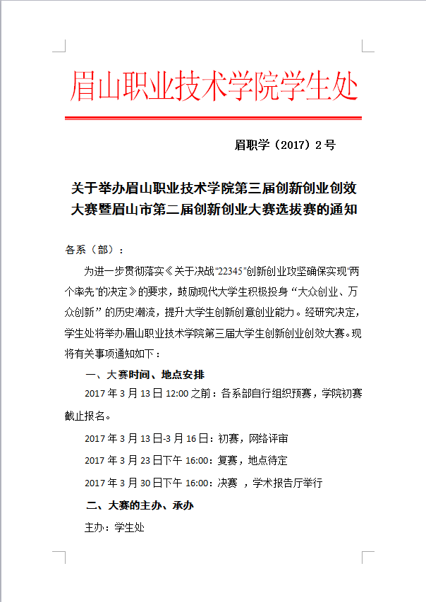 关于举办眉山职业技术学院第三届创新创业创效大赛暨眉山市第二届创新创业大赛选拔赛的通知