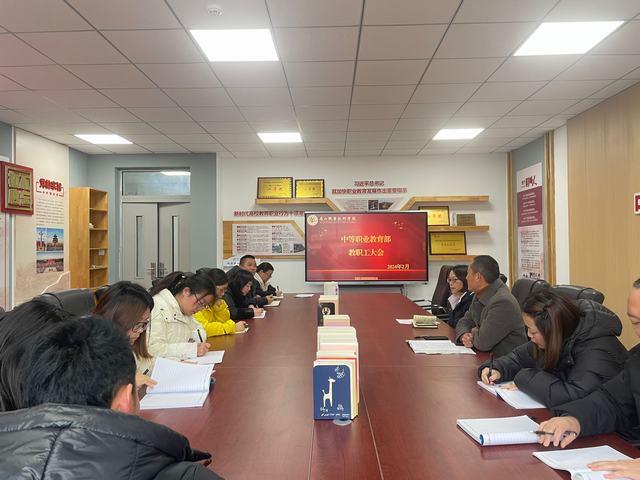 2月28日,中等职业教育部在党建活动室召开教职工大会。中等职业教育部主任张彬主持会议。