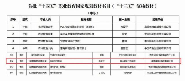 近日,教育部办公厅公布了首批“十四五”职业教育国家规划教材书目的通知。我校中等职业教育部教师陈继红编写的《办公应用基础》被认定为首批“十四五”职业教育国家规划教材书目。