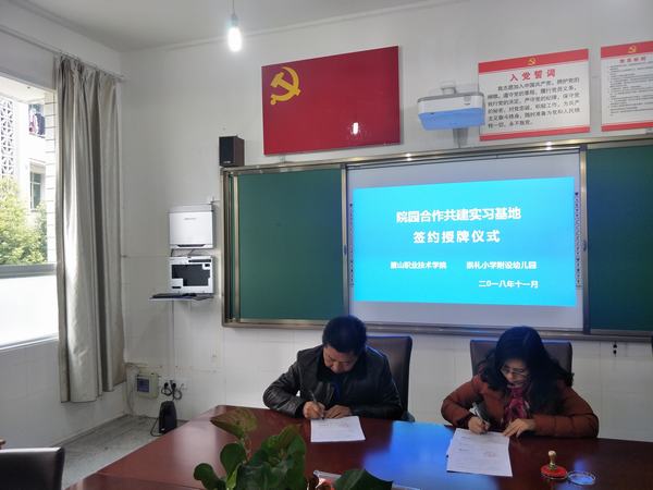 接下来,双方现场签订了《院园合作共建实习基地合作协议书》,余莲君为实习基地授牌。授牌仪式结束后,大家还就教育实习等工作进行了有益探讨和深入交流,并一致希望能以实习基地签约授牌为契机,进一步加强合作与交流,密切共建关系。