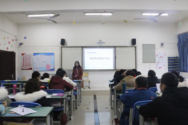 为推进期末考务工作的有序进行,更好的规范考试秩序, 1月2日下午,中职部在2602教室召开期末考试工作会议。会议由中职部主任余莲君主持,所有监考教师及考务人员参加会议。