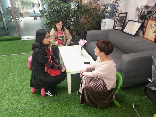 (与青神县金贝贝幼儿园负责人交流)