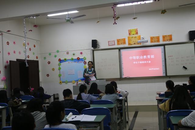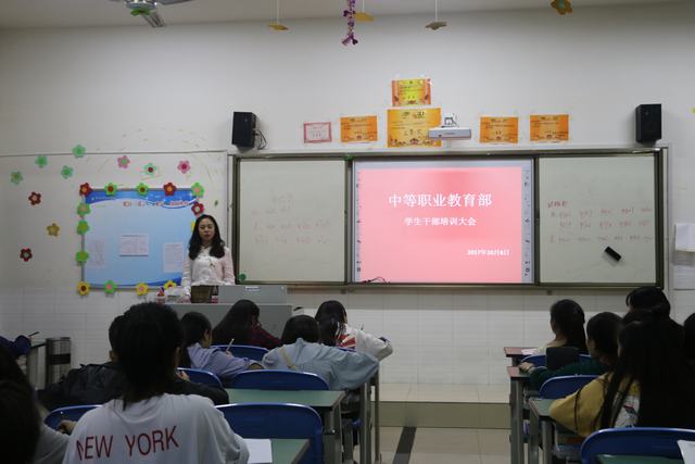 10月8日晚,中职部在2602教室中职部召开了团总支学生会学生干部大会。参会人员有中职部党总支书记陈菊仙、团总支学生会管理人员陈老师以及团总支学生会全体成员。