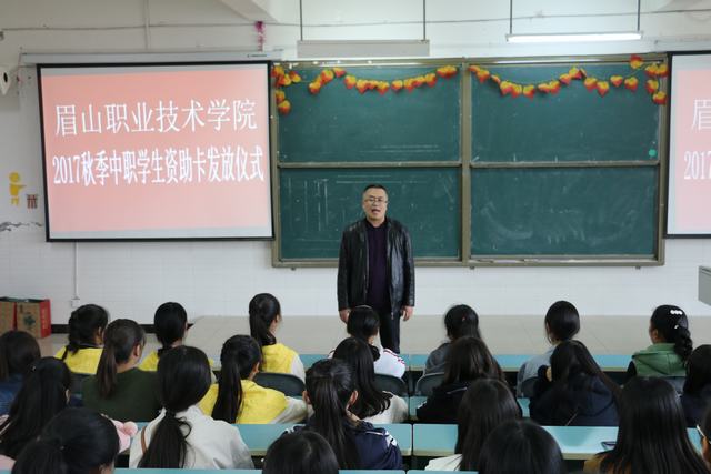 11月13日,中职部在2202教室举行了2017级中职学生资助卡发放仪式,市教育体育局资助中心主任秦元刚、工作人员余明、郑丽,中职部党总支副书记陈菊仙、辅导员赵小梅参加了此次仪式。