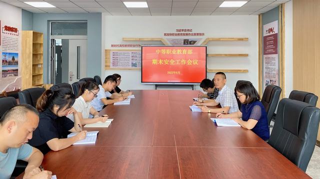 6月18日,中等职业教育部在党建活动室召开期末安全工作会议,会议由党总支副书记余志刚主持,系主任张彬、全体管理人员参加会议。