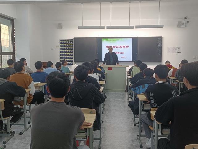 辅导员结合PPT介绍了春季易发传染病的类型、症状、传染途径、临床特点等。对传染病预防做了具体的讲述, 要求教室多通风、勤洗手、不吃不卫生食品、多参加体育运动、注射疫苗、搞好个人卫生,防止病从口入。