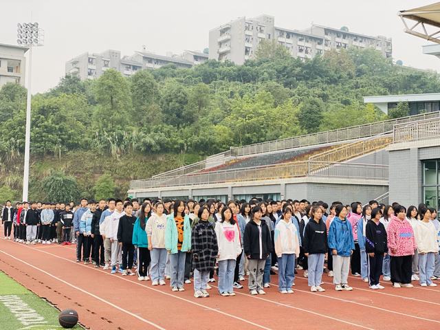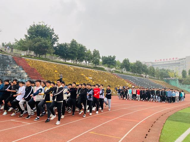 为迎接即将到来的眉山职业技术学院第二十届运动会,中等职业教育部于2021年10月18日组织21级337名同学新生在田径场进行校运会方阵训练。