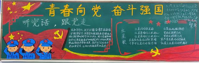 2021年是建党100周年,为积极营造全体学生学习“四史”的浓郁氛围,坚定党的领导,坚定社会主义道路,中职部开展“青春向党,强国有我”主题黑板报评比活动。