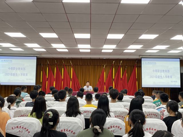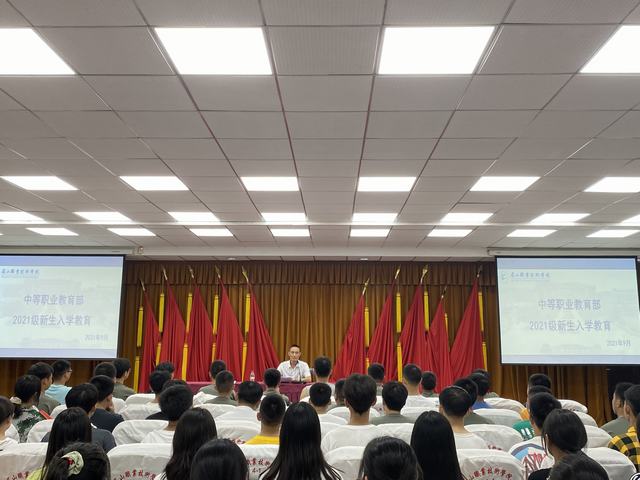 9月6日,中职部在学术报告厅举行2021级新生入学教育,会议由学生管理干事王杰主持,党总支副书记余志刚和全体学生管理人员参会。