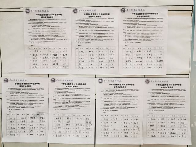中职部期末考试将于12月25日拉开序幕,为保持良好的考风考纪,创造一个公平、公正的考试环境,中职部在12月22日晚自习开展《诚信考试-从我做起》主题班会、组织学生签订《诚信考试承诺书》、诚信考试宣誓等系列活动。
