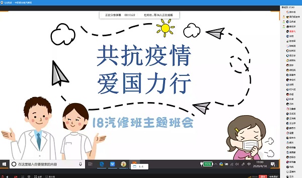 此次“共抗疫情、爱国力行”线上主题班会,通过云端团聚,促进了班级凝聚力,减轻了学生的心理压力,激发青年学生的责任感和使命感。