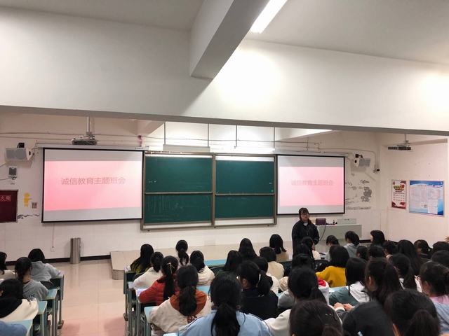赵老师用身边的一个真实案例引入班会主题,班会过程中她从诚信是立身之本、交往之道、是中华民族优良传统美德等几个方面,对学生们展开诚信教育,并倡导同学们在日常生活中坚守诺言,做一个诚实守信的人。