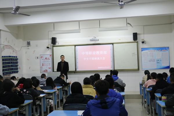 为进一步提高学生干部综合素质,强化学生干部队伍管理,2018年11月11日晚,中职部团总支书记史椿在2601组织召开学生干部会议,团总支学生会全体人员及各班班长、团支部书记参加了此次会议。