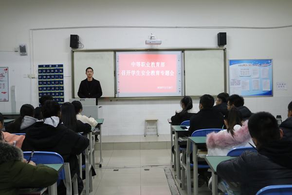为全面增强学生安全防范意识,提高中职学生自我保护能力,2018年11月19日晚,中职部学生管理干事史椿在2608教室举行“学生安全教育”专题会,系团总支学生会各部门负责人及各班班长参加了此次会议。