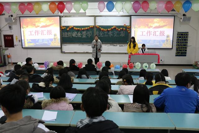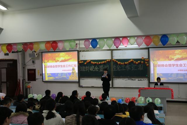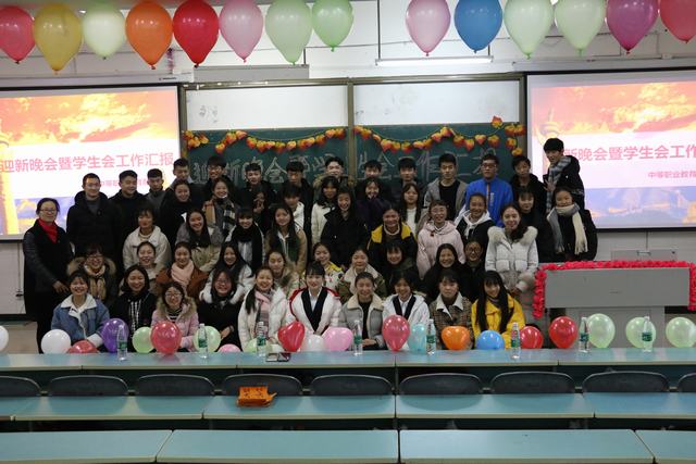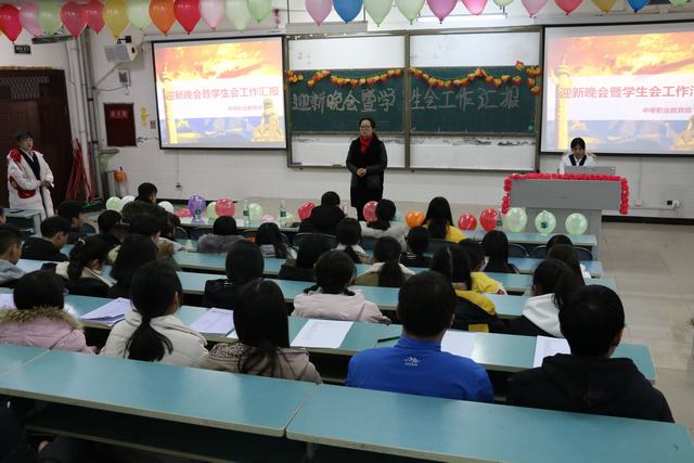 为加强中等职业教育部团总支学生会的凝聚力,使团总支学生会更加有序的开展各项工作。2018年1月3日下午,中职部在2202教室开展“迎新晚会暨学生会工作汇报”活动。参加此次活动的有中职部党总支副书记陈菊仙、辅导员史椿、赵小梅及团总支学生会和各班班团干部。