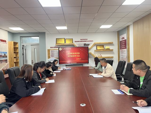 10月11日,中等职业教育部在党员活动室召开政治学习会,党总支副书记余志刚主持会议并讲话。