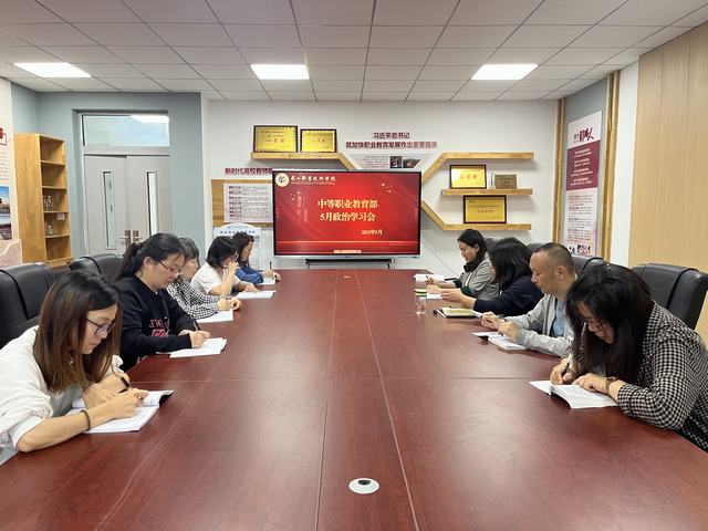 5月8日,中等职业教育部在党员活动室召开5月政治学习会,会议由党总支副书记任弘主持。