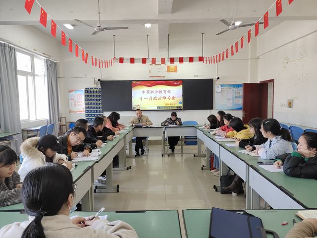 11月10日下午,中等职业教育部在2509教室召开11月政治学习会,会议由党总支副书记余志刚主持,全体教职工参加学习会。