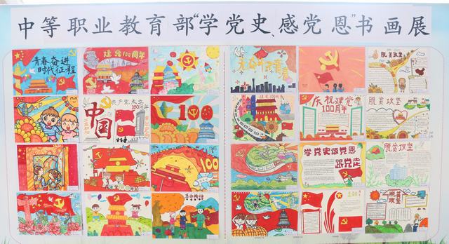 中职部组织青年学生以书画展的形式认识了解中国共产党的发展历程,进一步知党、信党、感恩党,增强学生的历史责任和使命感。