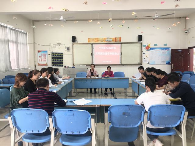 9月23日,中等职业教育部在2604教室召开党风风廉政建设专题会,会议由党总支副书记陈菊仙主持,全体教职工参加会议。