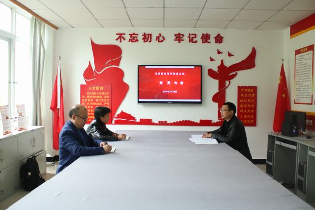 2019年3月18日下午继续教育培训部党支部在在行政楼101室召开党员大会。会议由继续教育培训部党支部书记黄文清主持。
